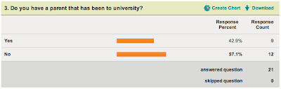 This was a positive sign in my investigation as it showed I am researching a topic that my audience feels positively about and will react well and fondly too.The results for this question were quite even, demonstrating a broad range of reasons to experience university. Social life appeared quite high which is something that I would have expected. Also, with only one participant choosing 'other' shows that I have identified the choices the audience would make quite well.